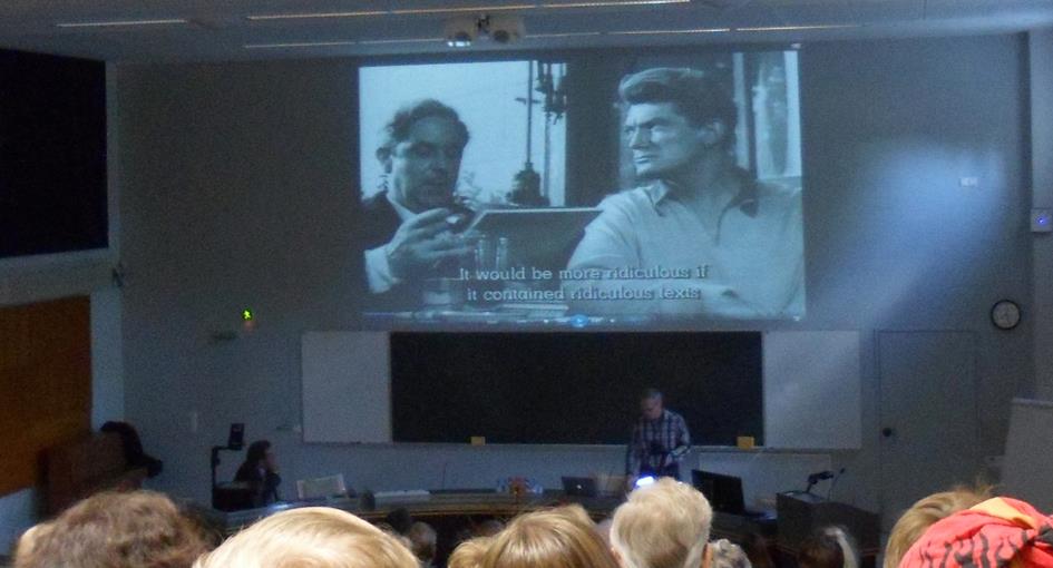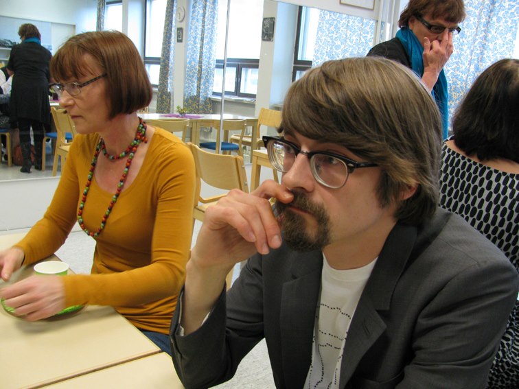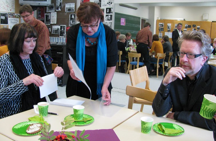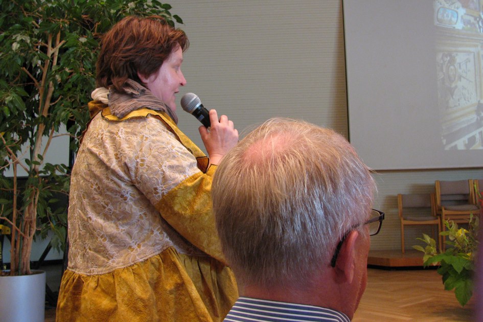 Professori Helmi Järviluoma-Mäkelä kysymässä.