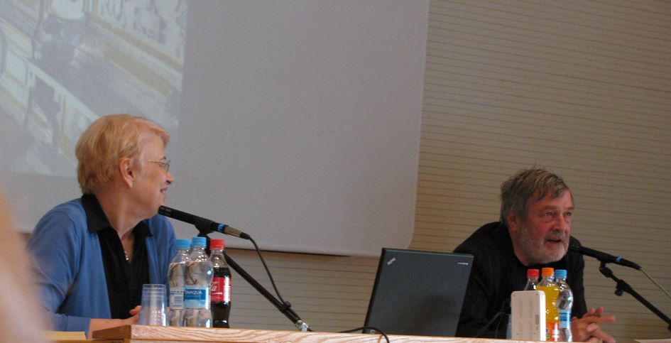 Kirjailija Kari Tahvanainen ja professori Raili Elovaara