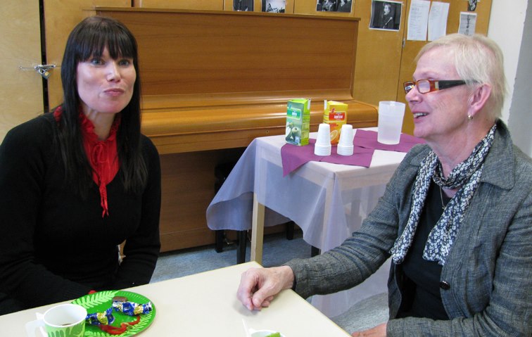 Professori Auli Hakulinen ja kirjailija Mikaela Taivassalo